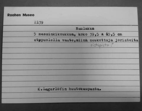 Museotanttikin on muinaisella 1980-luvulla ollut talossa ihan niillä töin, että on luetteloinut museon esineitä korteille. Esinekortit kirjoitettiin ensin käsin ja aikataulun salliessa kirjoitettiin puhtaaksi joko käsin tai kirjoituskoneella. Korttiin tehtiin myös piirros esineestä. Muistanpa erään hyisen syyspäivän, kun istuin Pakkiksen kultasepänhuoneessa kortistoimassa esineitä takki päällä, näpit aivan jäässä. Kirjaamistyöhön valjastettu lyijykynä tipahti kohmeisista näpeistä lattialle ja pyörähti lattianrakoon ja sitä myöten lattianalussyövereihin. Siellä se on edelleen varmassa tallessa.